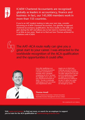 require you to think hard, challenge yourself and draw on your accounting experience. The skills I gained from the AAT and ACA qualifications helped me apply the knowledge I learned during my training to my job. It’s given me a great start and continues to help me through my career.