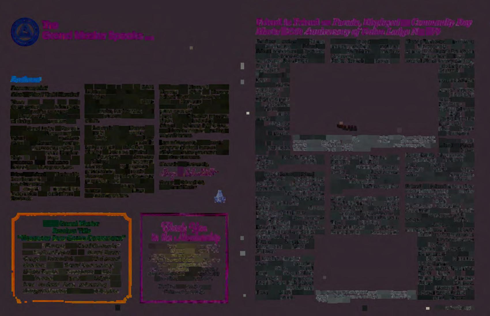 day was the result of a year-long effort by the Lodge and its 125th Anniversary Celebration Committee, headed by Past Master John H Hughes.