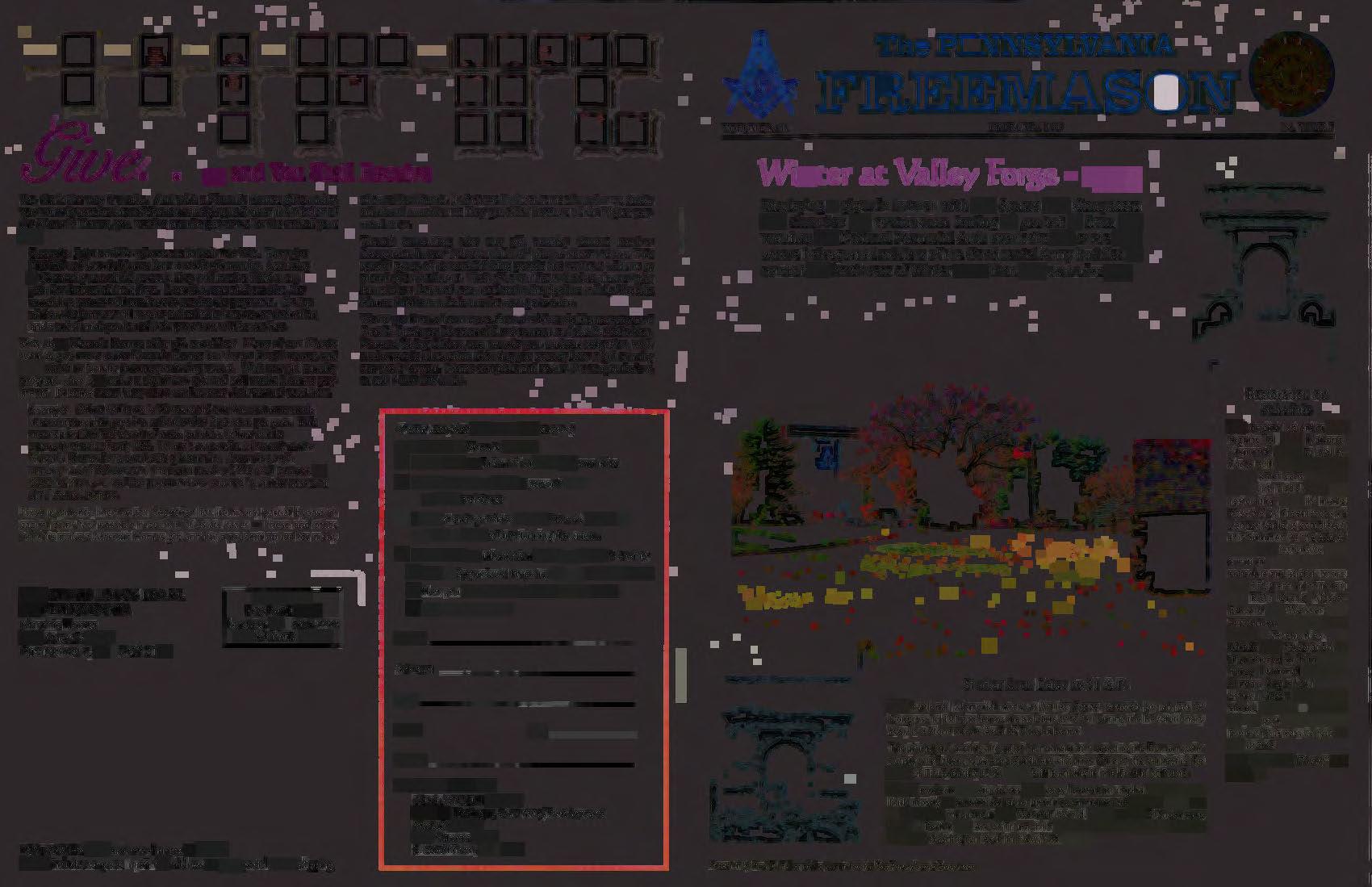Published by the Masonic Homes, own ed and ope rated by the G rand Lodge of Free and Accep ted Masons o Pennsylva nia, as a me ans of soliciting the physica an d fi nan dal su pport o the o r the Fratem iry, their fa milies and th e pu blic n general.