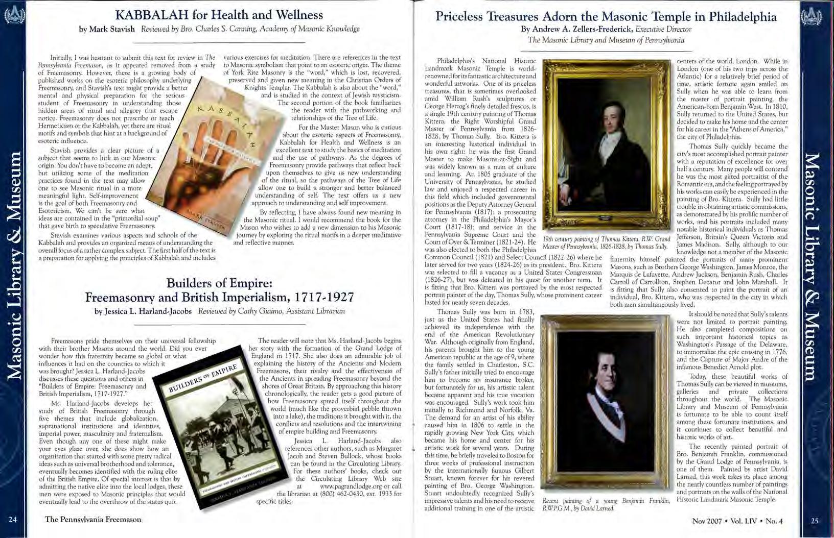 The Masonic Temple in Philadelphia, home of the Grand Lodge ofPenruylvama and the Masonic Ubmry and Museum of PeniiS)'Ivania, has embarked on an and monumental historical restomuoo and preservaoon proJCCt, wuhan expected completion date of October 2008.