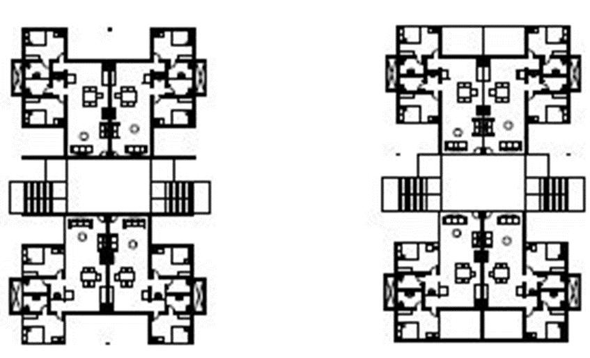 Three different type of clusters or units with areas 40 sq m, 60 sq m and 90 sq m were specified with a given ground coverage