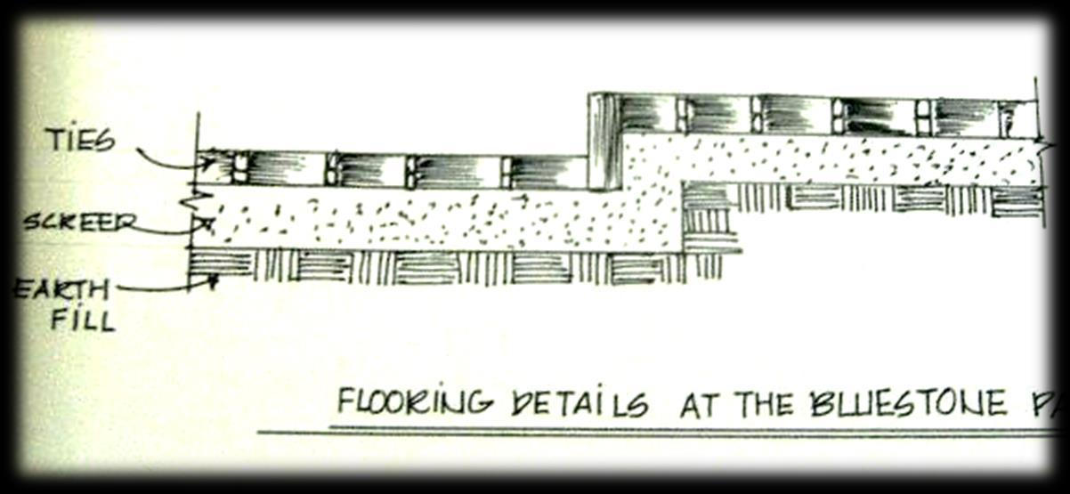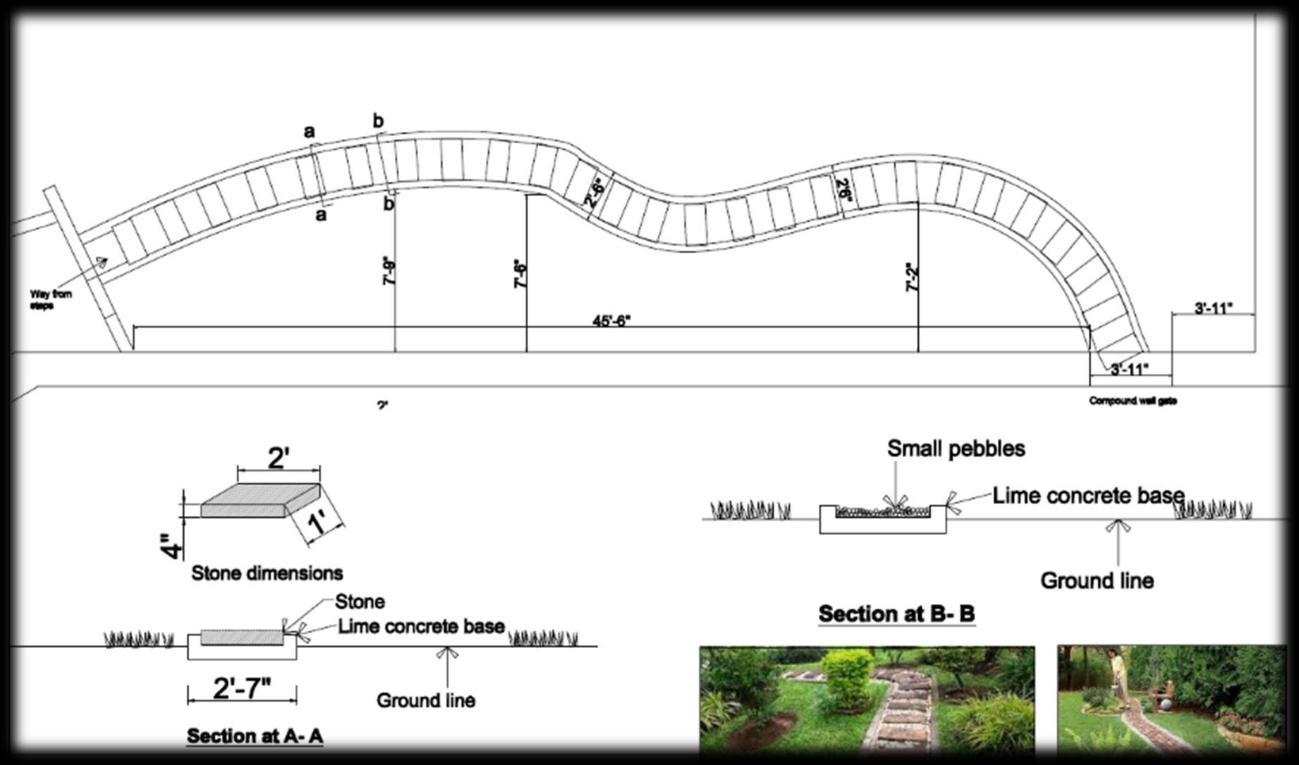 VIEW AT PATHWAY TYPE OF TIMBER SEATING VIEW AT ART SECTION CONSTRUCTION DETAILS OF BLUESTONE PATHWAY