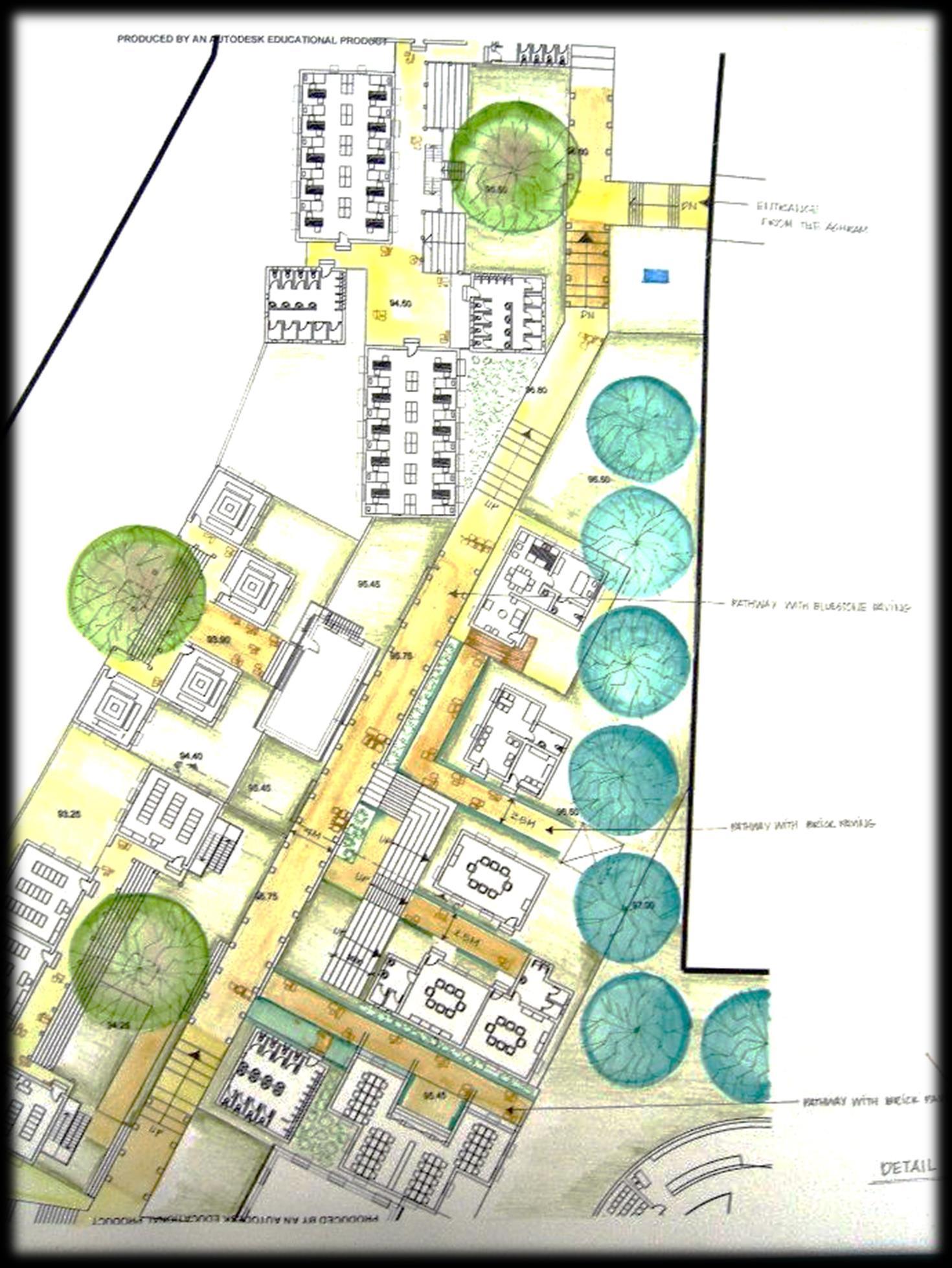 The following drawing is an architectural design project Contours and landscape details were first introduced in this project