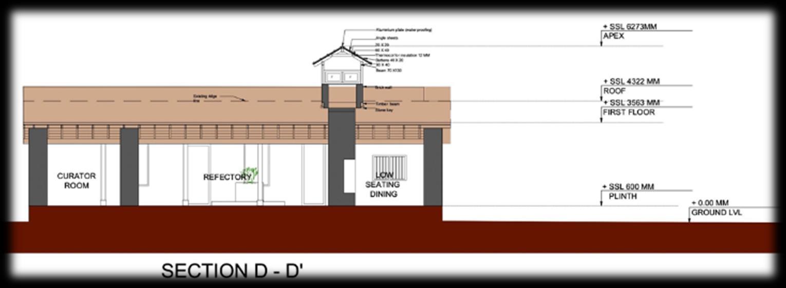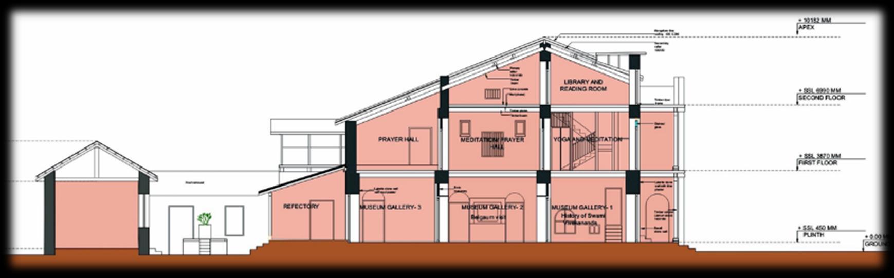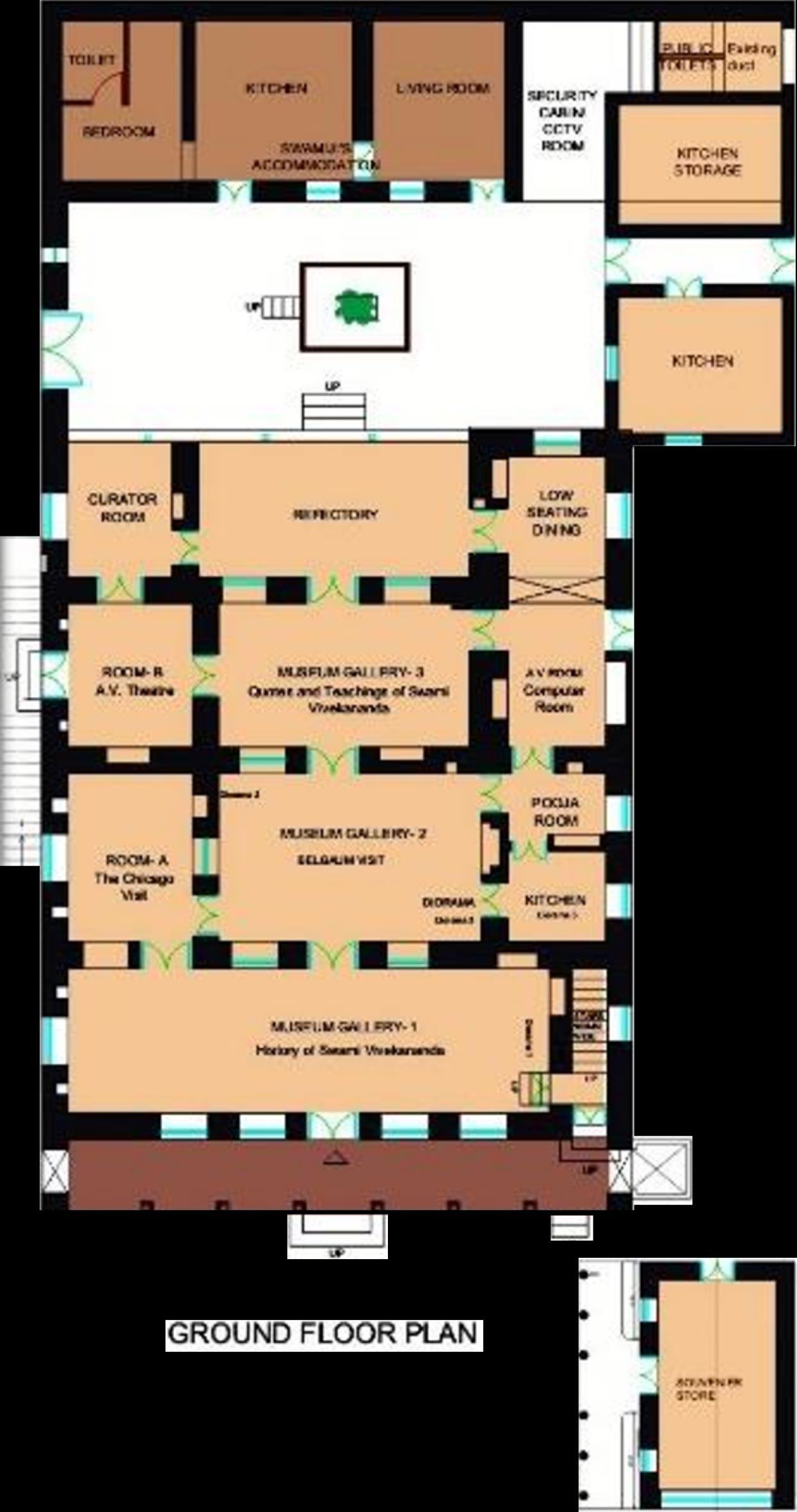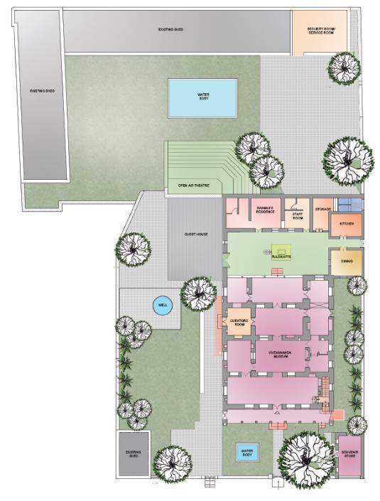 Proposed / present use Museum based on the life of Swami Vivekananda, Souvenir store, Dining Hall, Kitchen, Owner’s residence,Curator’s room, Staff room, Security guard room, Guest House and a small open air theatre.