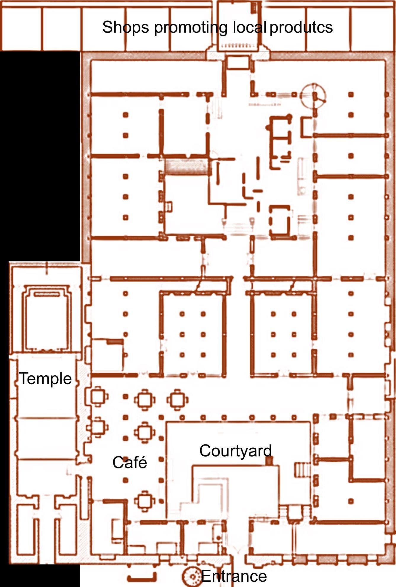 and promote local products and skills Design proposal Activities proposed on Ground floor Cafe, Audio visual activities and presentations about local heritage, shops abutting main road which consist of local products focusing on food items, clothing etc