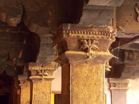 Corinthian columns In the colonnaded corridor Corinthian columns are observed which are a representation of Neo Classical architecture in the Colonial period The column originates from the Greek architecture style, and it is one of the classical orders of architecture The capital of the column has lavish ornamentation which resembles leaves and flowers (Basel)The columns have fluted shafts and the height of the capitals gives them more slender effect The Corinthian column base rests on the plinth The columns in the Math are now colored in bright orange, yellow and red In all the corners of the corridor the columns are grouped in four to support the roof