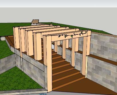 Design of a pergola in a garden Design of a pergola in the garden Design of a pathway in a garden