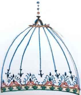 Dome The dome on the top of the flat roof is an Islamic faceted dome with convolutions(called as melon dome). It also has finials on the top. It is articulately painted with floral design.