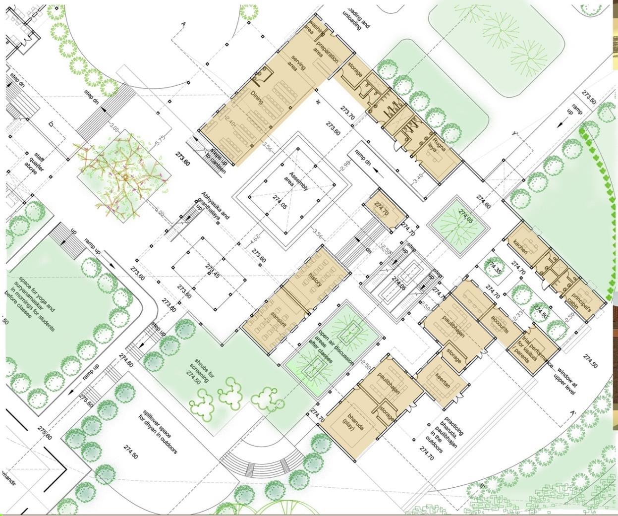 •Enhancing the beauty of the structure by upgrading the quality of landscape spaces around like gardens, existing trees, Tulshikatta