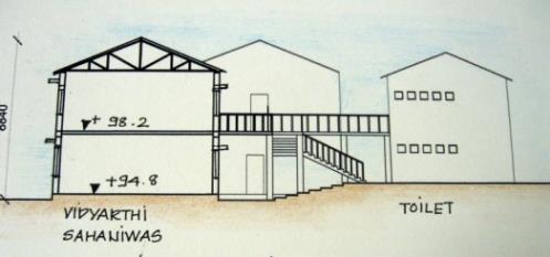 Past Use - The ground floor of the house is used for a bookshop, office, kitchen, dining room & bathroom.The first floor consists of a prayer hall, the room where Swami Vivekanand(a famous saint and a preacher) stayed, residence for Maharaj, Storage rooms, Pantry & toilet (later addition) The second floor which is in completely dilapidated condition has two rooms with slopping Mangalore tiled roof A hundred year old idol of Ganapati (local deity) is safely displayed in the prayer hall on first floor.