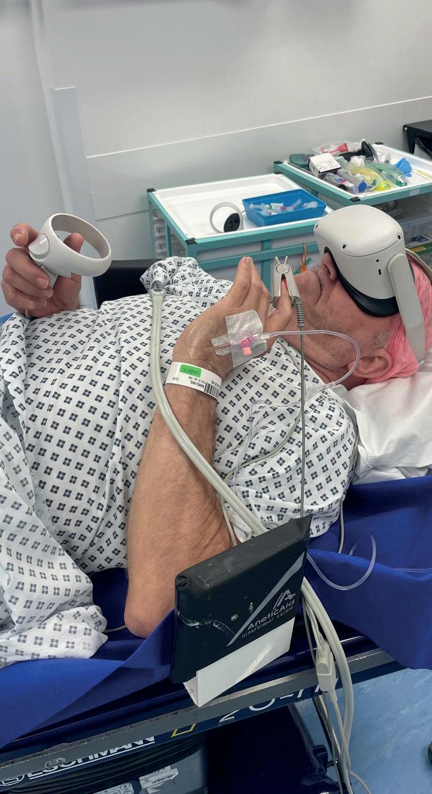 “I’ve been struggling with my knee for years. It was painful and stopped me from walking, which I used to love,” said Tony. “The VR headset was very comfortable to wear. I had a controller to pick what I wanted to watch. Mr Ahad showed me a calm video walking through a park, but I chose a couple of YouTube videos about the war – one of my interests. I didn’t hear anything in the theatre and it really put me at ease. The surgery flew by. I’d recommend it to anyone.”