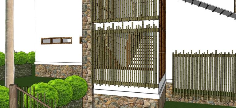 Pohon bambu diletakkan di sebelah selatan, utara, dan barat tapak yang berfungsi sebagai barrier polusi suara dan udara.