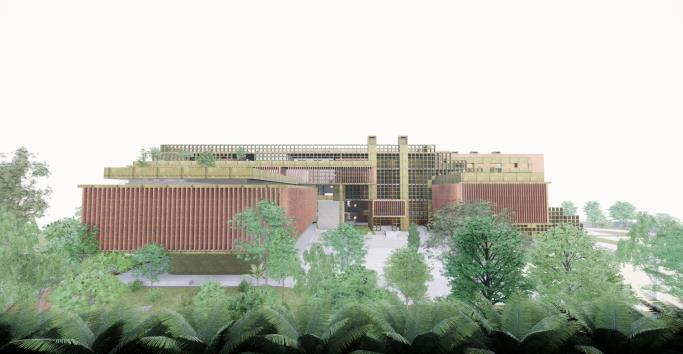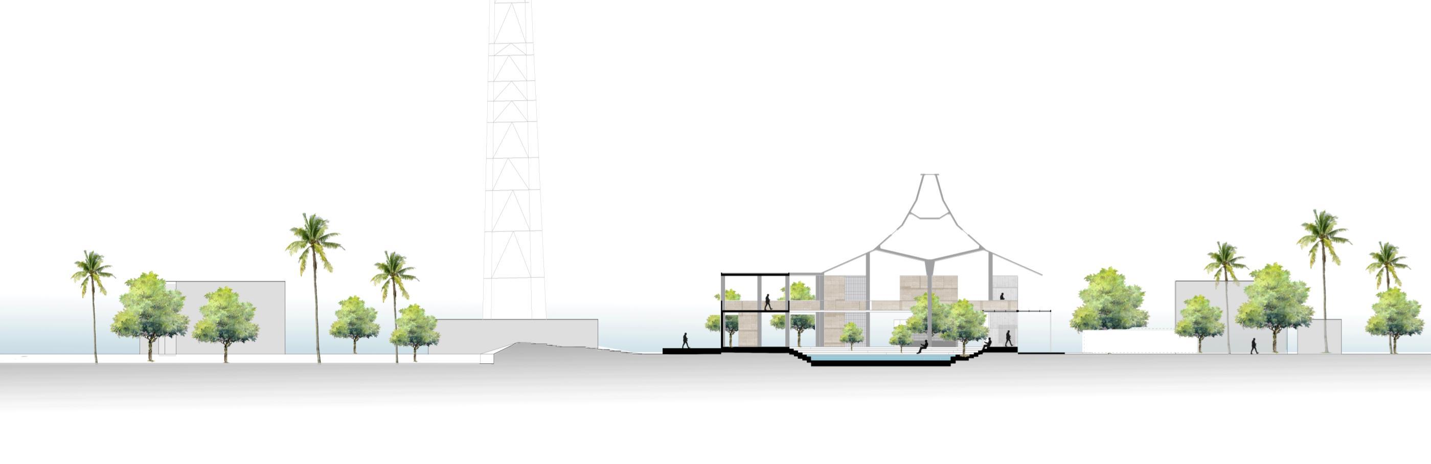 The section depicts the connection between the bus terminal and the public Centre and the roof being a landmark