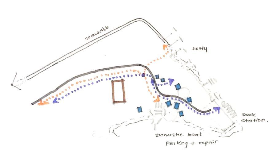 The other part of the site is dedicated to the temporary kiosk spaces for the locals which could promote the local food and other community-based activities