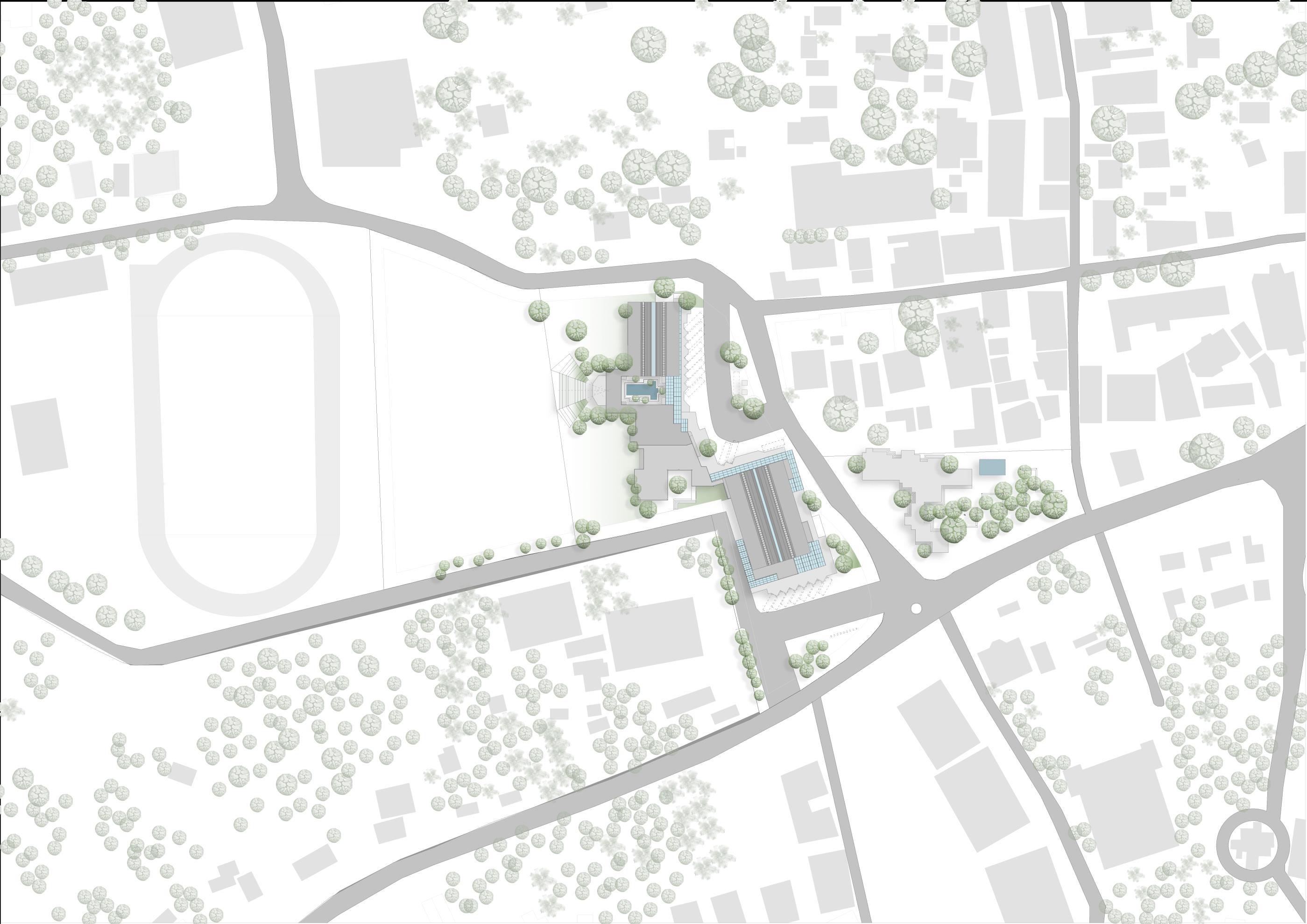 The Kalyani which acts as a public centre and the buffer for the bus terminal. The idea behind this being the public centre is with respect how the 18 lakes ( water body ) creates a sense of identity of the town
