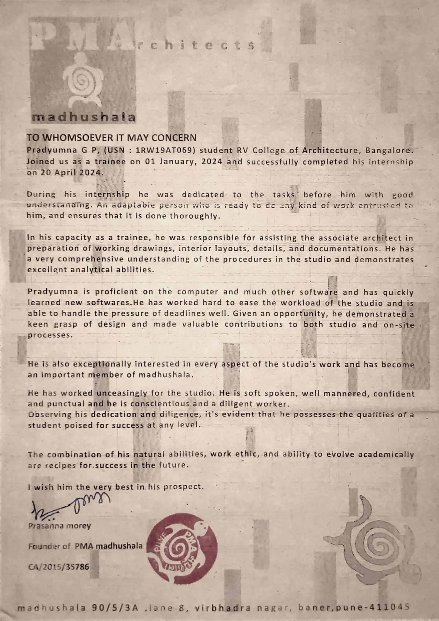 This Portfolio is solely created for the purpose of application for job in architectural firms. All works are primarily carried out by Pradyumna G P , unless mentioned otherwise