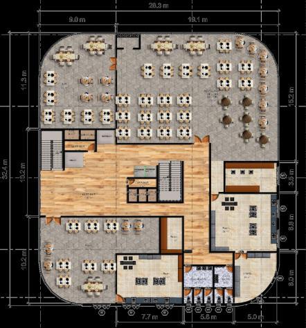 ➢ The structure is supported by the thick pillars. The mutual shading, ventilation and daylighting factors are some of the features of this concept. There are 2 types of plan layouts which repeat later till the top.