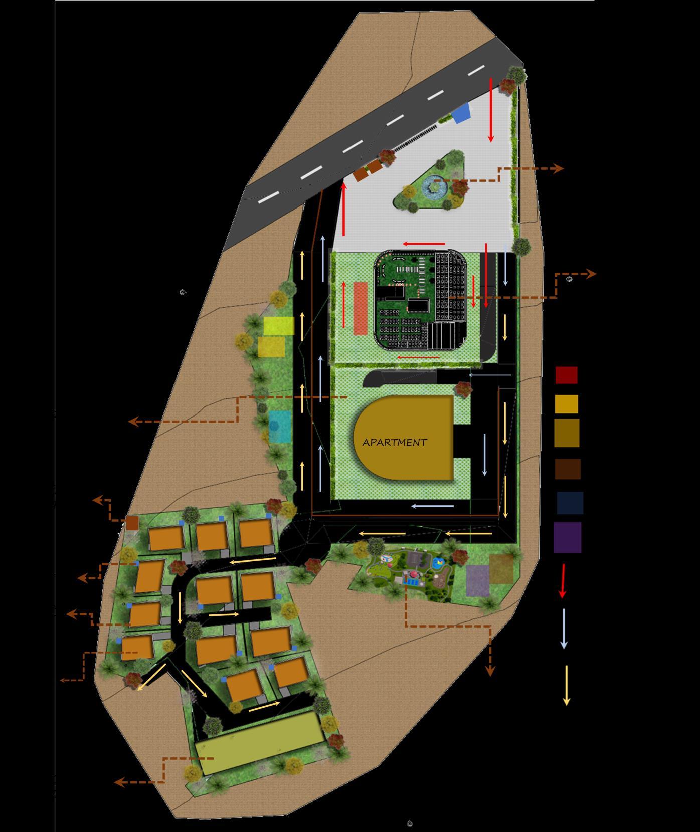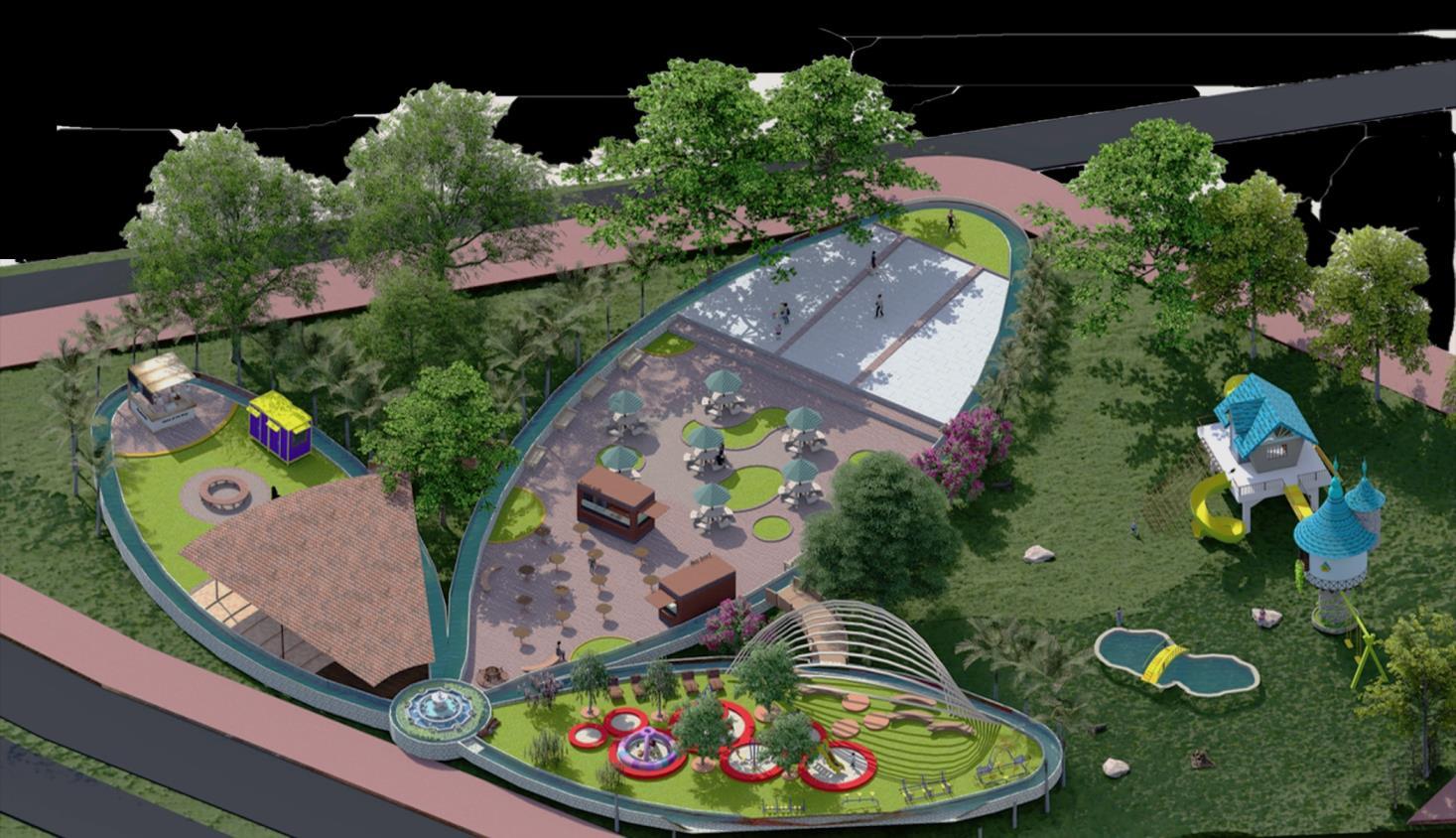 The chosen location is an empty plot with the potential for greenery and is easily accessible to the general public. The planning also mimics the nature in terms of petals of flower and natural water drain/features.