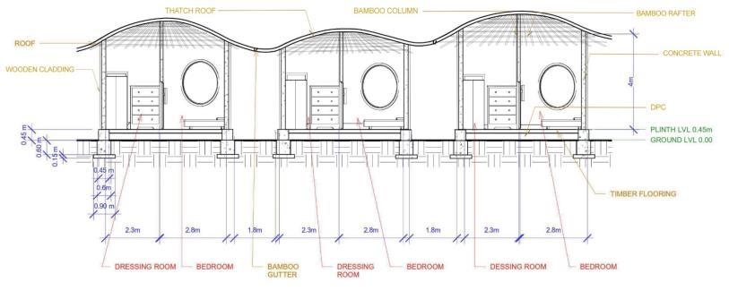 Requirements given: Building 2 will have a basement (having store rooms/leisure rooms), stilt parking on the ground floor (it may also contain a service quarter and toilet), and 3 subsequent floors above the ground floor each having a 3BHK + 3T configuration.