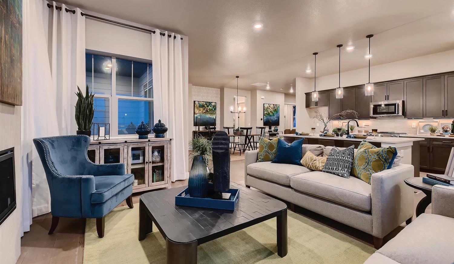 Kinston at Centerra is walkable to shops, dining and trails! Gather at the Kinston HUB and Mountain Cowboy Brewing for a coffee or craft beer. A place to work out, swim or lounge by the pool! Easy access to I-25 and plenty of entertainment right out your door! Our Silverthorne ranch plan is 1,894 square feet, featuring 3 bedrooms, 2 baths, floor-to-ceiling FP, gourmet kitchen, covered front porch and 1,728 unfinished basement!