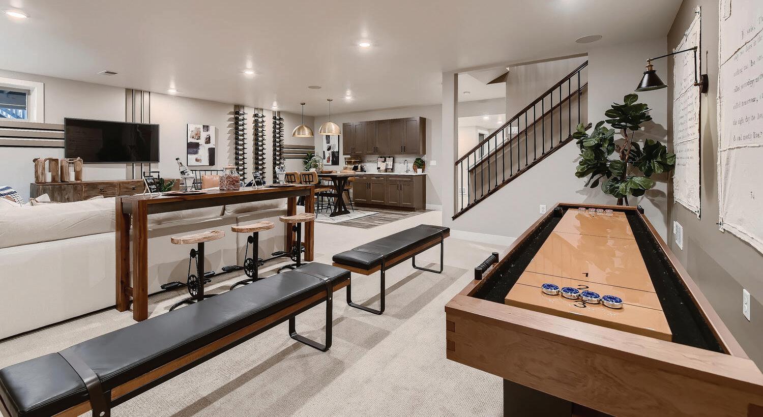 The model home’s optionally finished lower level encourages buyers to consider the possibilities of leisure and “lifefullness,” or what the builder calls a “life fully lived,”