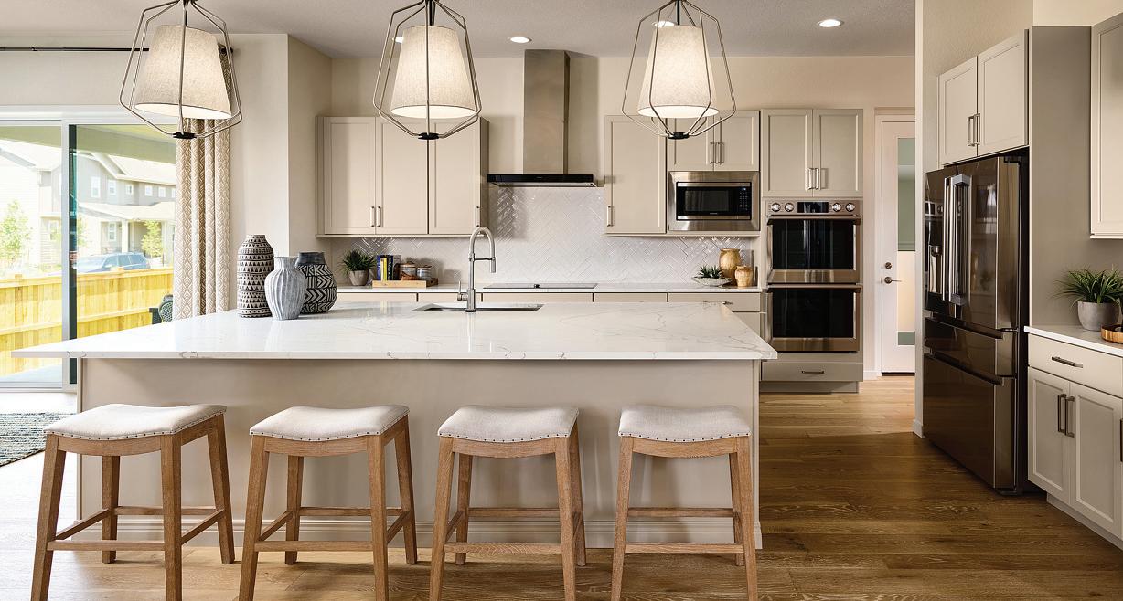 produce an optional entertainer’s kitchen that is not only a highly functional space for the home chef but also simply a stunning room from which to greet the day with a cup of tea or linger over a glass of wine in the evening. “Stop by our recently opened model home of the Antero at West Edge at Colliers Hill to see the personalization options and how this home can enable the life you dream about,” said community sales manager Rebecca Lucero. Boulder Creek chief revenue officer Jessica Champlin added, “Part of the beauty of this model home is that it gives your imagination room to roam the endless design possibilities, from custom paint details and unique lighting to metallic and wood finishes. Check out