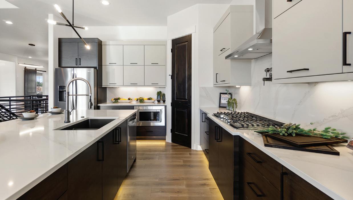 The home was built in 2021 with custom touches and high-end finishes. The outdoor living space sets this home apart. There’s a full wet bar, an entertaining space and a walkout basement, and you can enjoy views of the mountains from a built-in hot tub in the backyard.