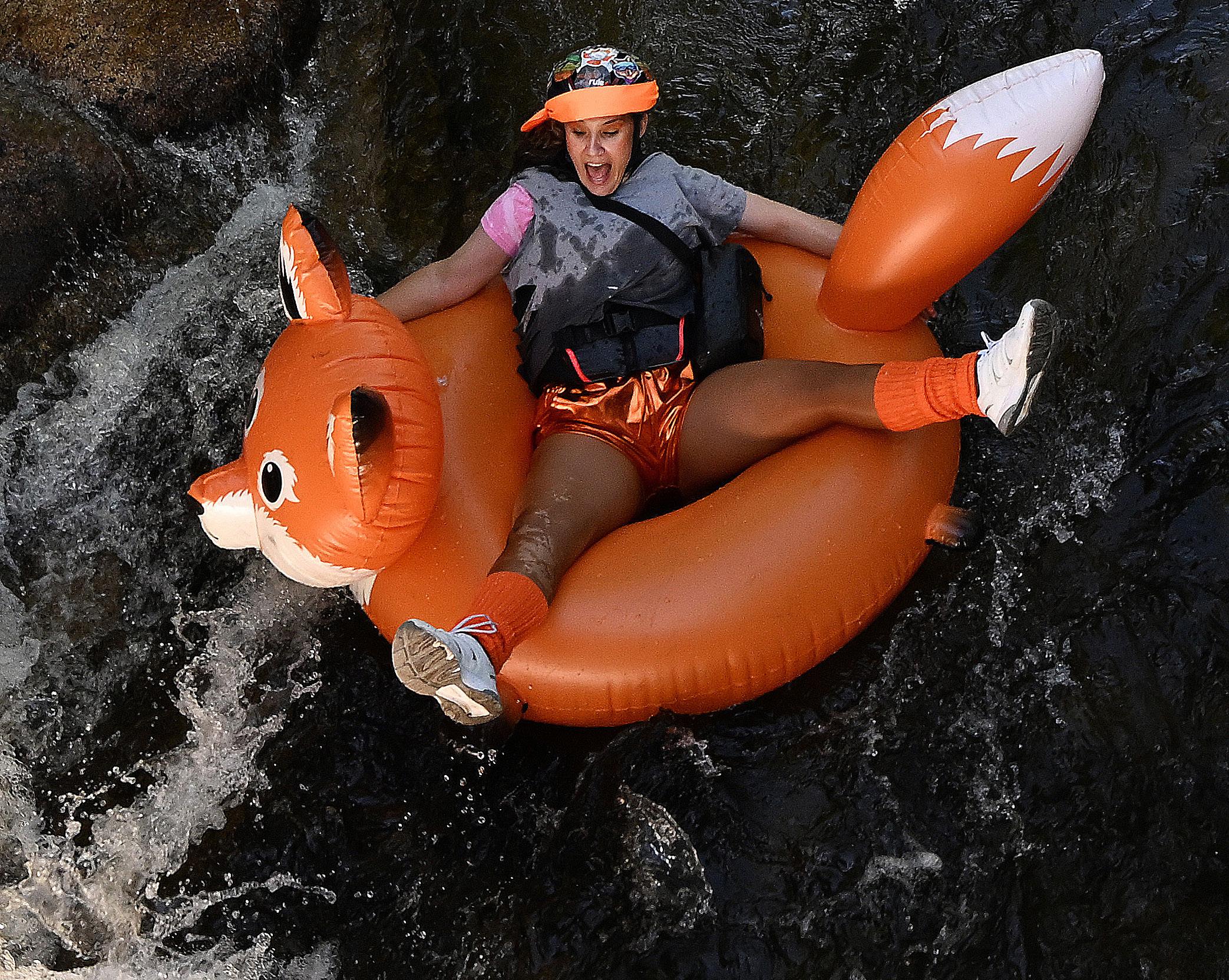 A Tube to Work Day participant reacts to a whitewater section July 11during the 16th annual Tube to Work Day on Boulder Creek.