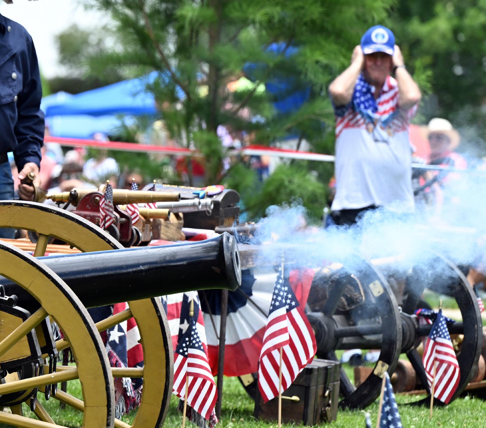 Cannons fire as the Longmont Symphony Orchestra plays during the Fourth of July celebration.