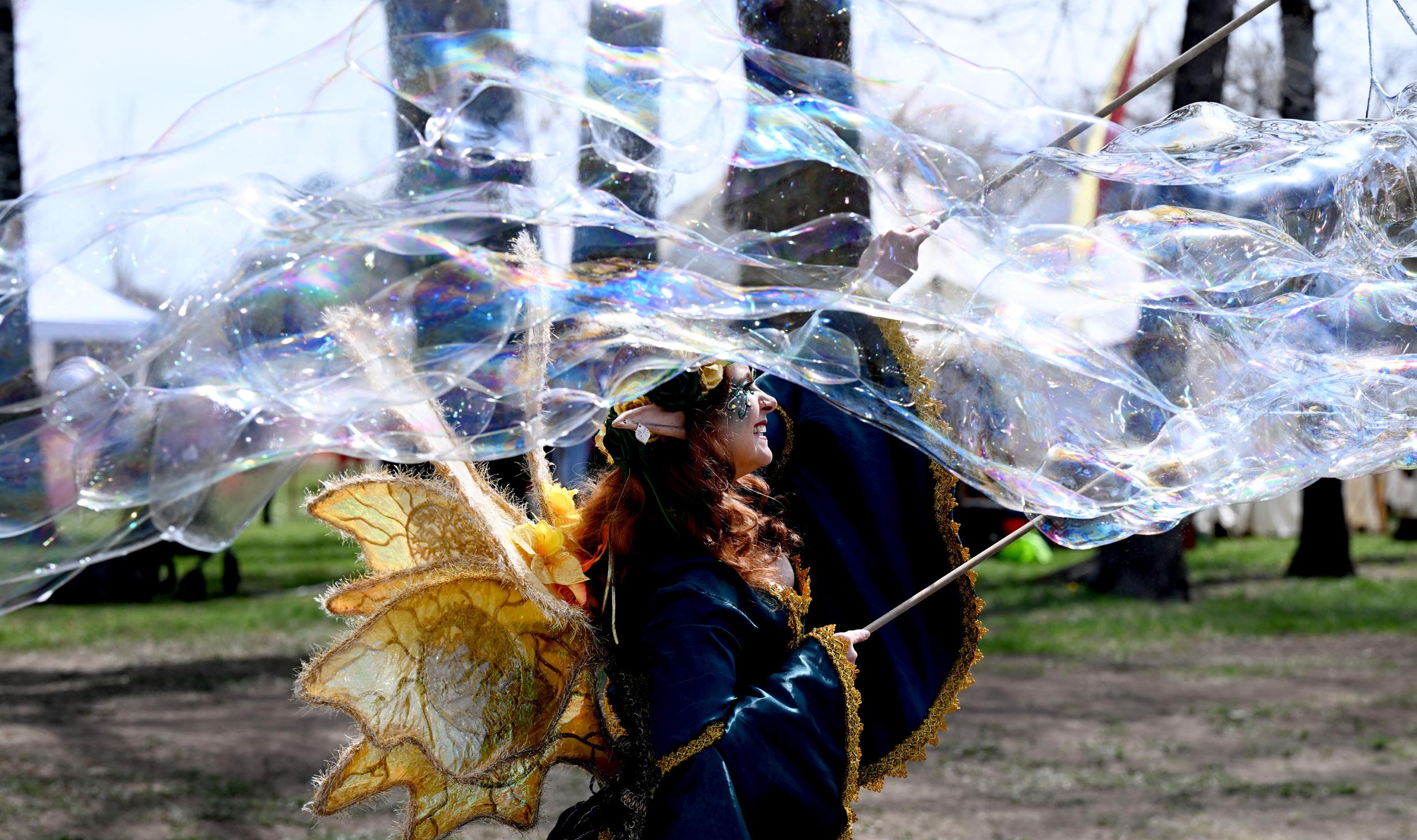 “Lemon Drop” the fairy brings out her bubbles during the Colorado Tartan Day Festival at the Boulder County Fairgrounds on April 13.