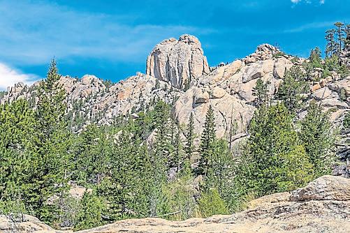 TheBlack Canyon Trail hasmanyviews of therockoutcrops on LumpyRidge,including thePear, Needlesand Batman,in RockyMountainNationalPark.