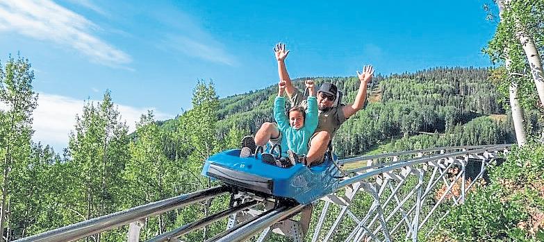 TheMustang Mountain Coasteroffers more than 2,000feetof twists andturns as it travelsdownthe mountain