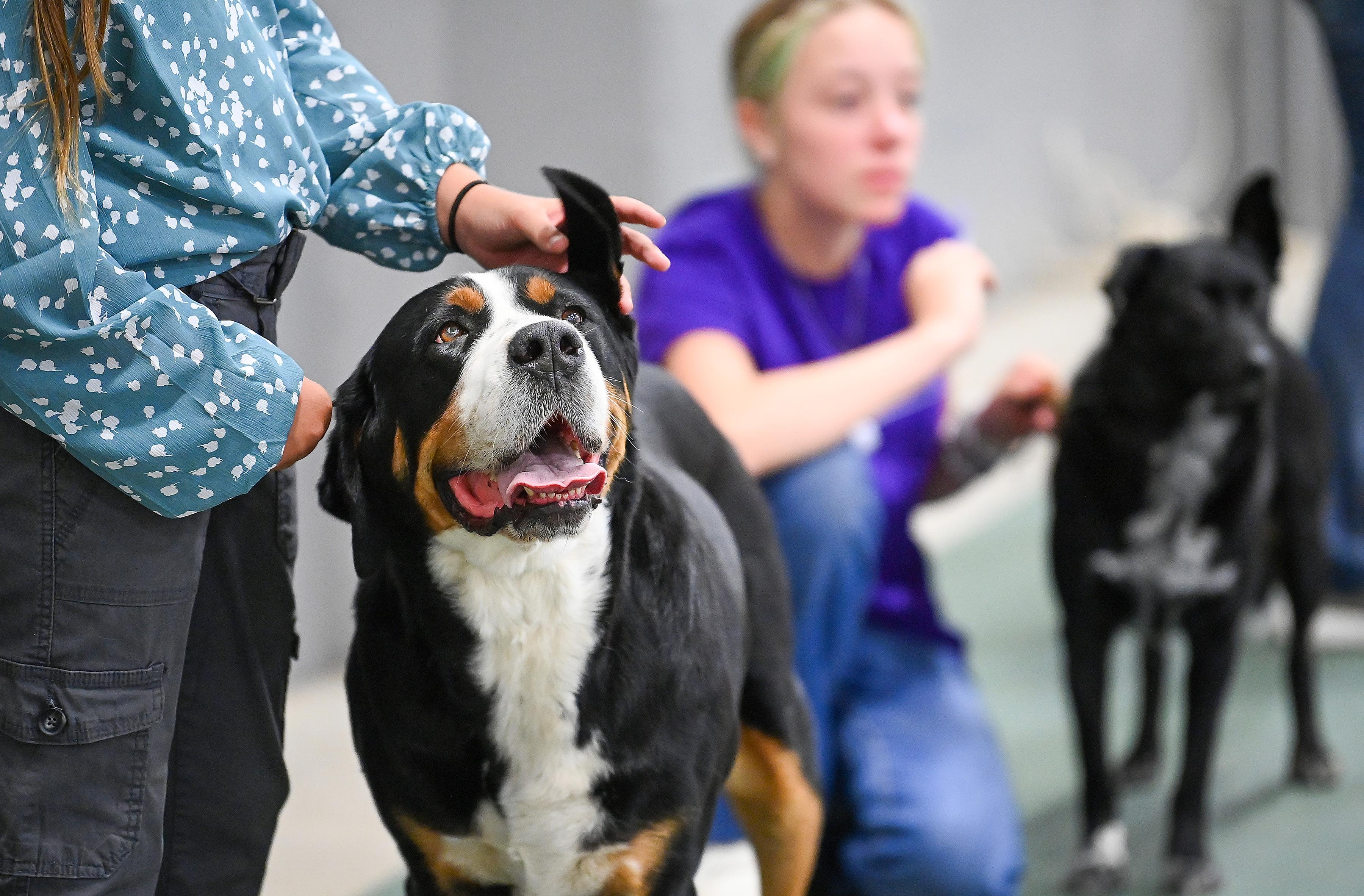 A dog named Grace is scratched by Lainey Rigley during the Weld County Fair 4-H Dog Show held at Island Grove Regional Park in Greeley on July 19