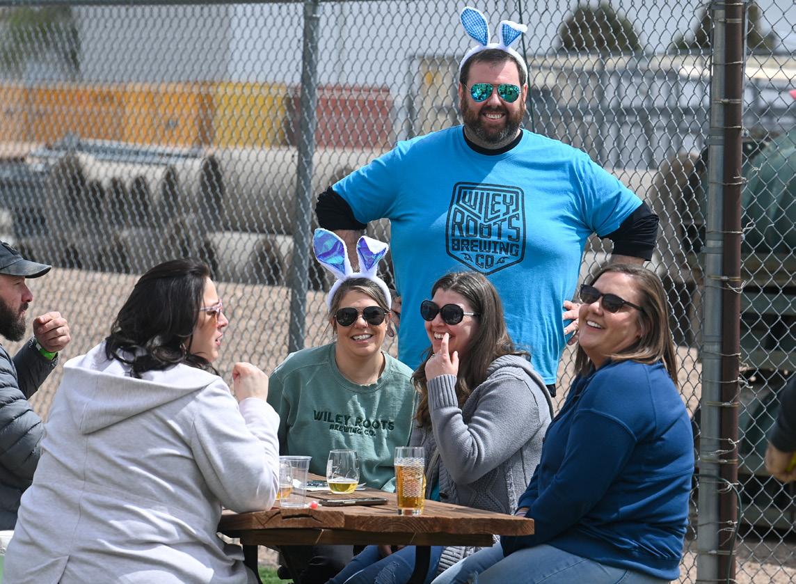People enjoy the afternoon during the Wiley Roots Brewing Company’s Adult Egg Hunt on April 19in Greeley