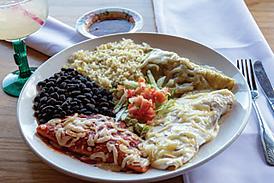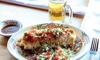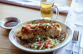 Chunks of sirloin slowly simmered in red chile sauce until very tender. Served with Mexican-style coleslaw.