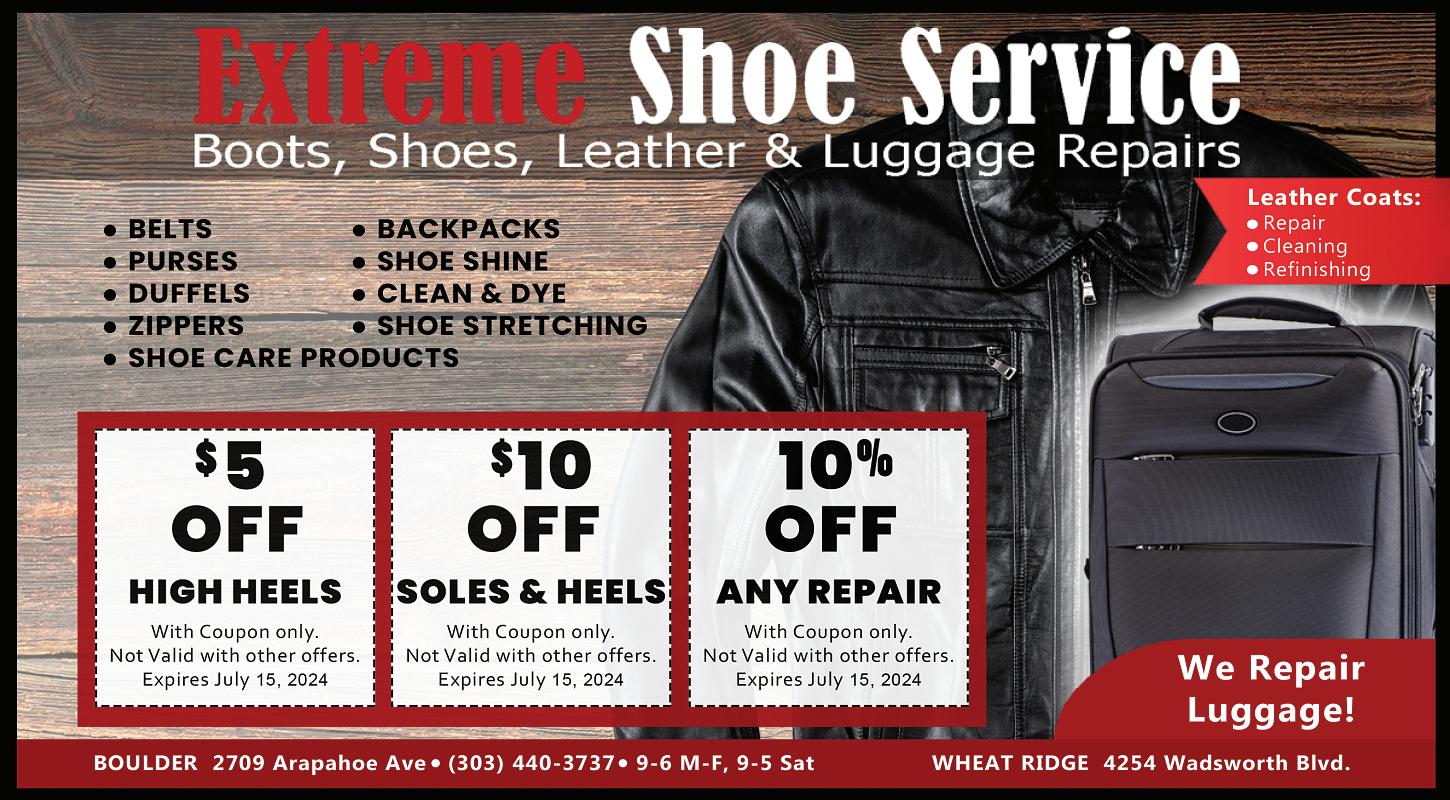 NOW WITH AUGMENTED REALITY! See Table of Contents page for details. GREENLIGHTSAVINGS.COM Beautifully Clean, Honestly Green Family Owned & Operated in Boulder County for over 70 Years OUR DRY CLEANING PLANT IS 100% SOLAR POWERED Same day dry cleaning and laundry available Shoe repair - Alterations 4 Convenient Locations: 440 Black Diamond Dr. • Lafayette • 303-665-9493 (Main Plant) 4800 Baseline Rd. • Boulder • 303-499-5554 | 3325 28th St. • Boulder • 303-444-2877 2690 28th St. A • Boulder • 303-442-2252 | www.johnsdrycleaners.com FREE Pickup and Delivery. Call 303.579.3044 or visit johnsdrycleaners.com to enroll