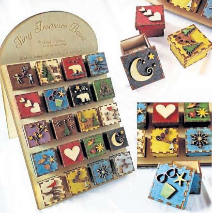 1 TinyTreasureBoxesarebeautiful, unique,andhandmadeinthe USAfromrecycledmaterial.These highqualitycraftsmanshipboxes arelasercutinMaine.WildBirds Unlimitedhasauniquecollection oftheseboxesfeaturingnature scenes,animals,andbirds.They comeintwosizestostoreyourtiny treasures—greatstockingstuffer!