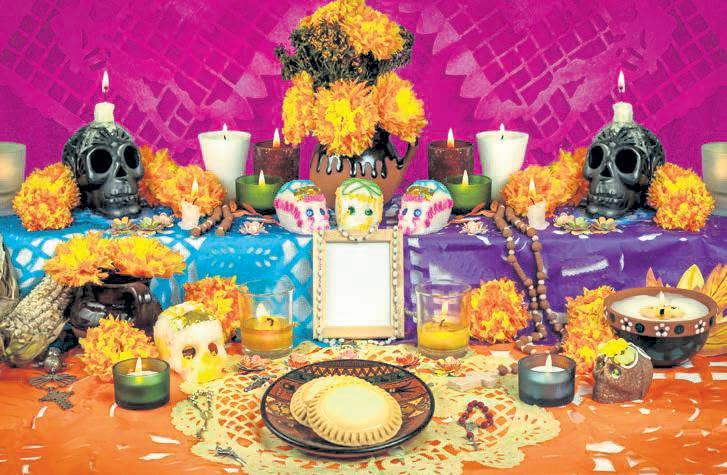 Participantscreatetheirownofrendasandlearnabout DiadelosMuertos.Makecolorfulcandleholders,unique frames,paperflowers,sculptures,andmoreandhelp usdecorateourcommunityaltar.Bringphotocopiesof lovedonesoranimals,or“copies”ofotherofferings,that theyarewillingtopartwith,ifitemscannotbereturned.