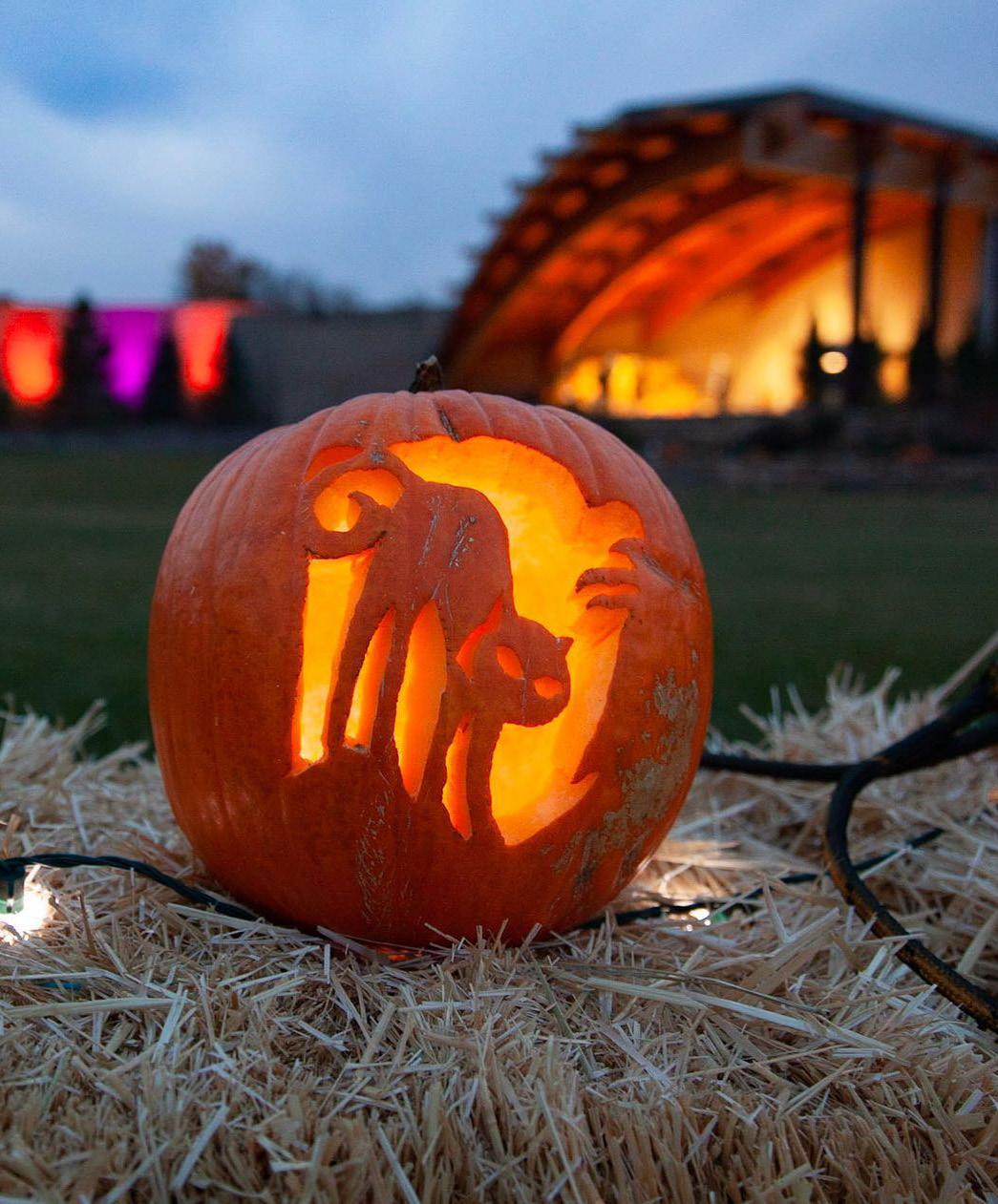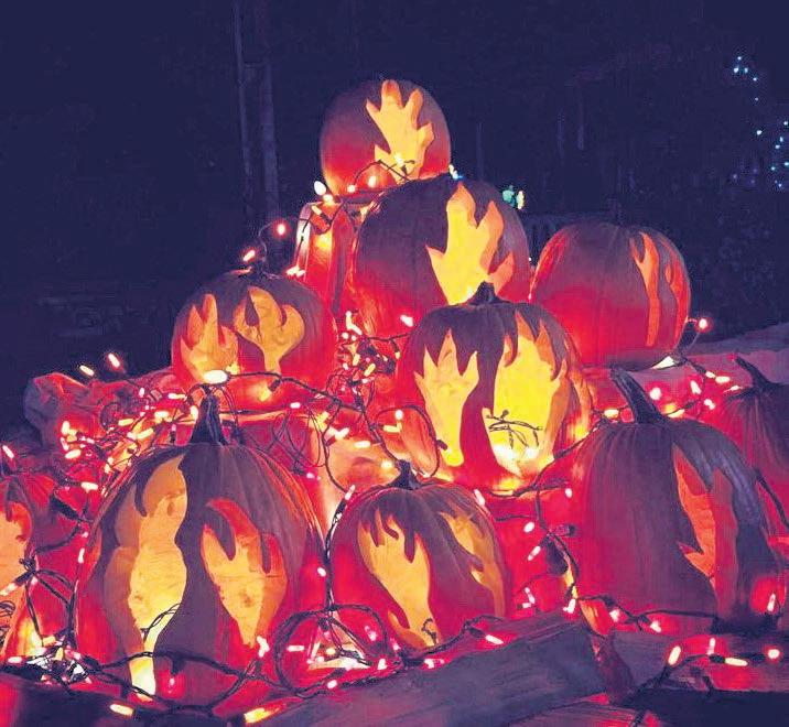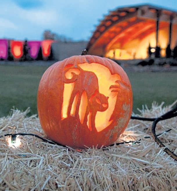 Pumpkins,ofcourse,andnot justinyourlatte.Timetopick theperfectjack-o-lanterncandi date.Ifyoudon’twantthemess ofcuttingoneupyourself,take awalkundertwinklinglightsto enjoythecarvingworkofothers attheGardensonSpringCreek.