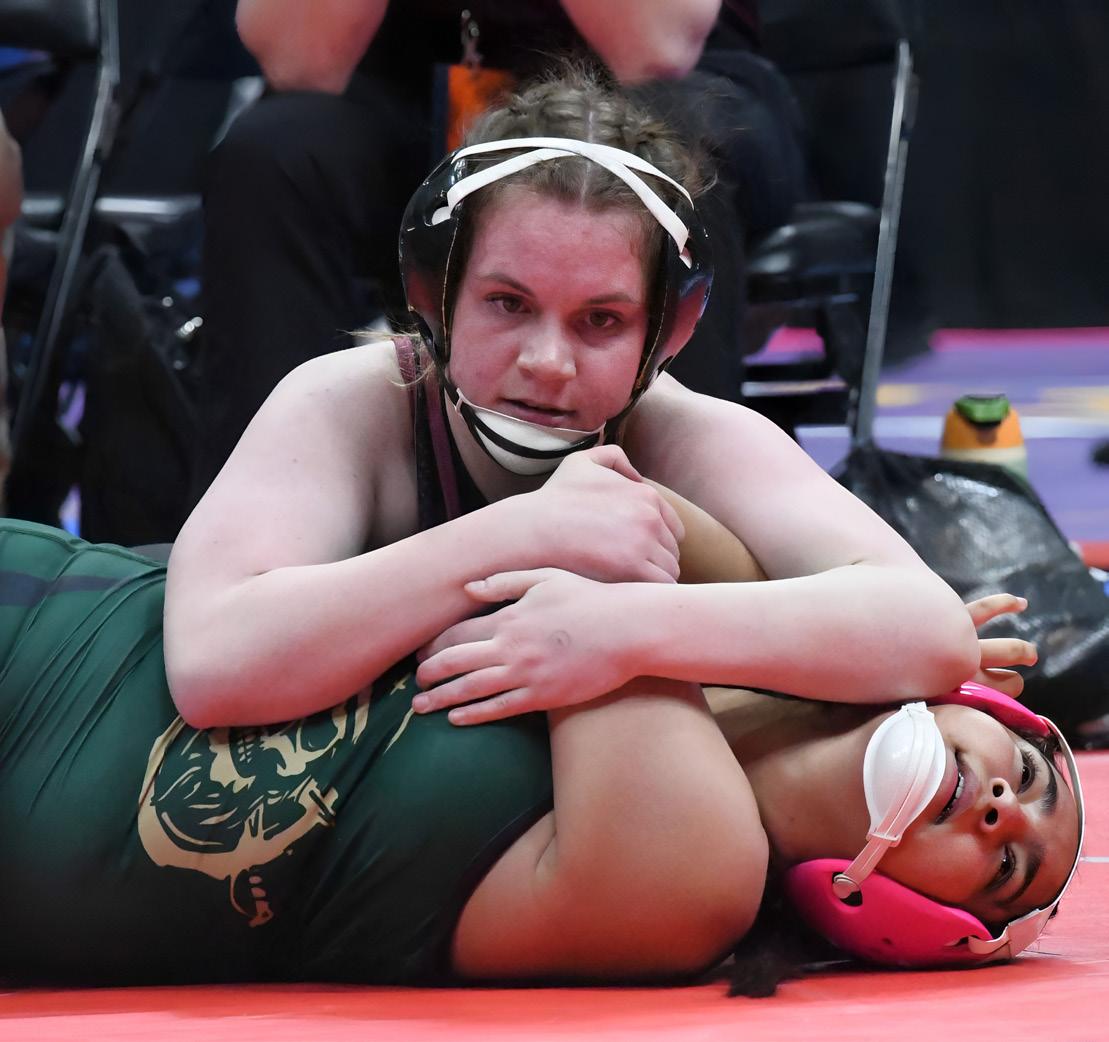 Berthoud’s Abi Speer wrestles during the first day of the CHSAA state championships Feb. 13at Ball Arena in Denver