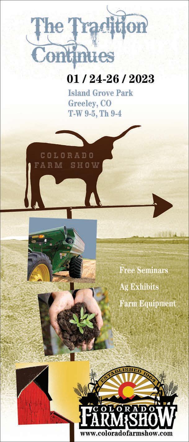 TheColoradoDepartmentof Agricultureisdeeplycommitted toensuringfarmingandranchingremaintheculturalandeconomicdriversacrossColorado. Weknowthatpreservingandenhancingagricultureforthefutureisnotaneasytask.Itmeans supportingthenextgenerationof agleaders,diversifyingmarkets andensuringourmarketsareresponsivetocustomerandproducerneeds,andpromotingre-