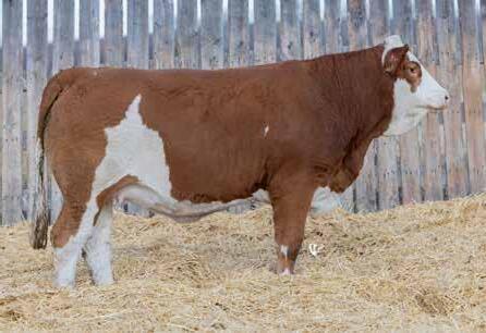 Honey is without a doubt the biggest framed red lady in the sale. She is an absolute powerful female. If you’re looking to increase size and length this is your girl. At times when females are larger framed, they can give up shape and dimension, but not Honey she is full middled and well muscled. Much like the Jolt sired cattle are known for. The half fleckvieh calf she carries sired by Jesse James will be one to watch.