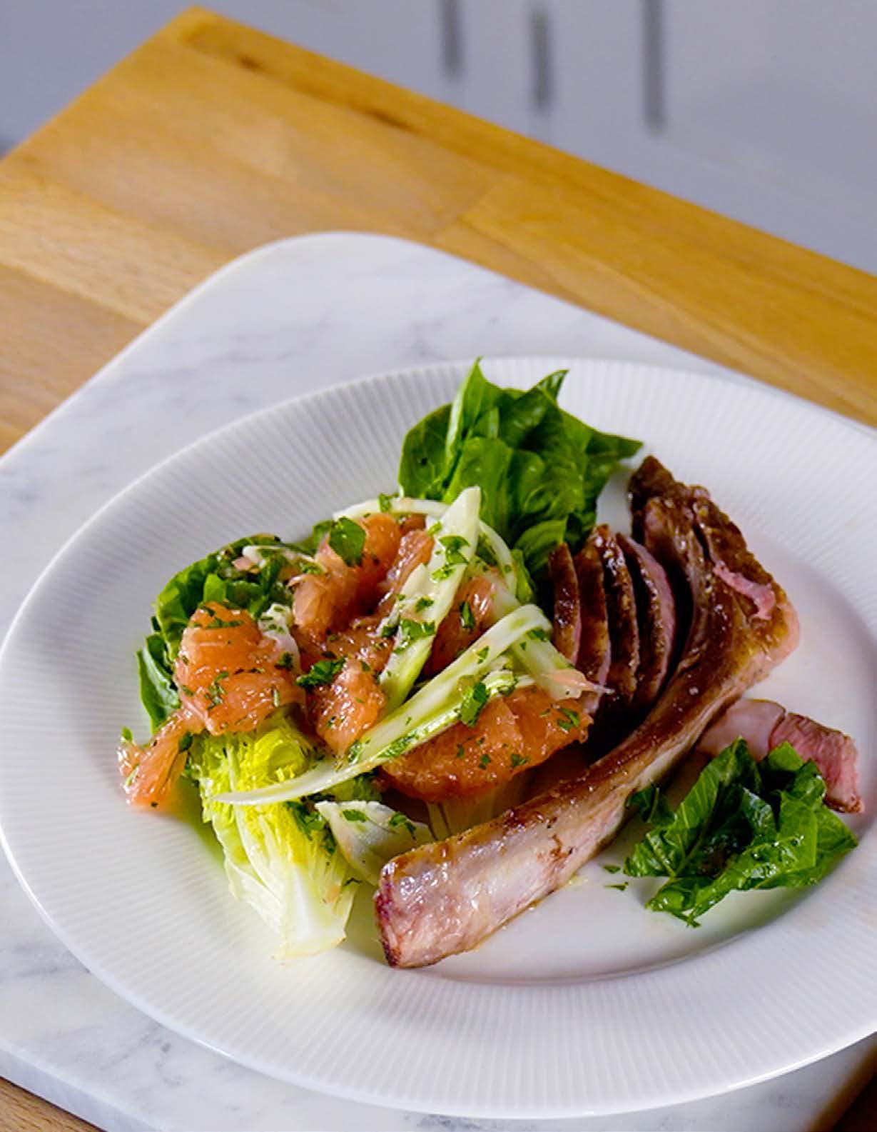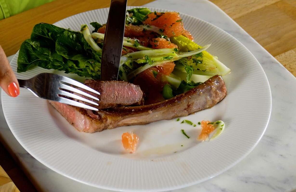 PICTURED –Single Chop Lamb Chop with Citrus Salad written and prepared by Chef Kendra — Now on YouTube!