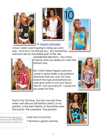 10 10. hapari swimwear I know I said I wasn't going to bring up swimsuits. And now I've tricked you. But sometimes swimsuits are an inevitable part of life, like presidential elections. Too many choices and you really just want the bottom line. But I think these Hapari swimsuits come in some really cute patterns and love that you can mix and match the tops and bottoms by style and color to suit your fancy. Get it? Suit your fancy? I could not be sorrier for that.