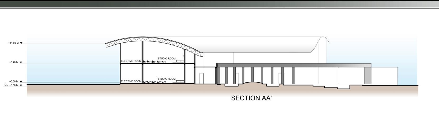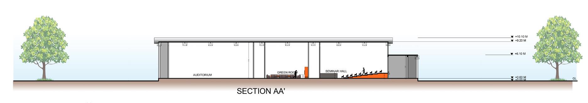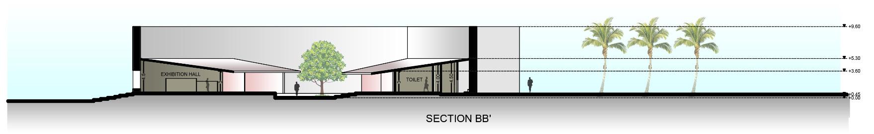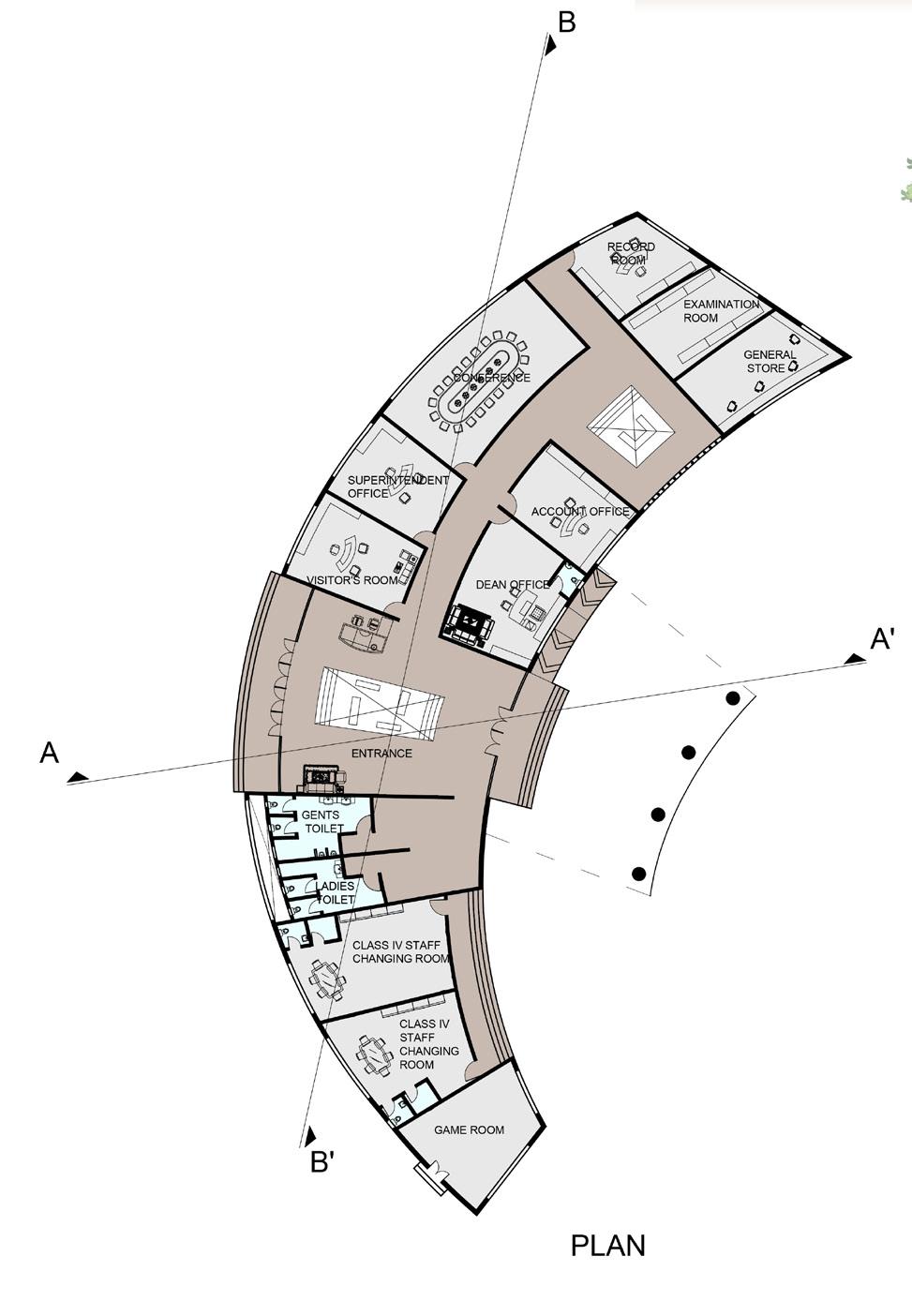 The building structure is devided in three blocks according to the users. Admin area, institutional area and exhibition area are seperated from one another for user convenience.