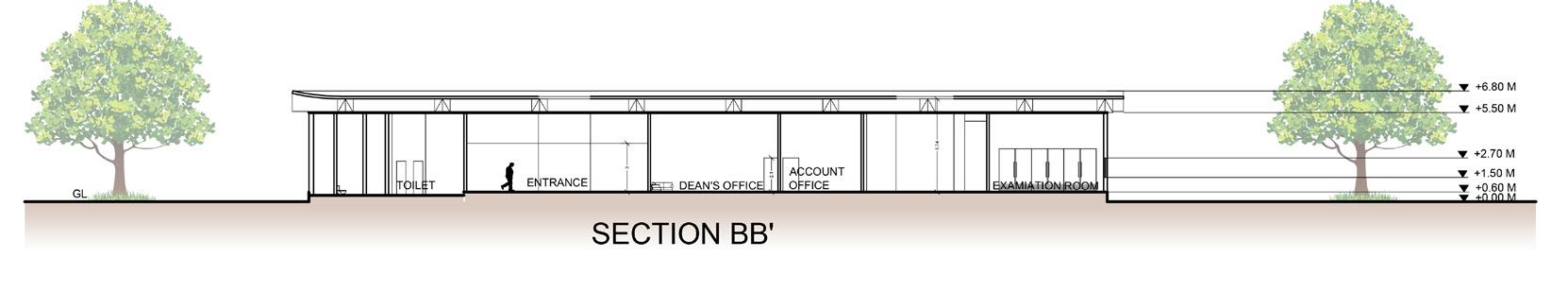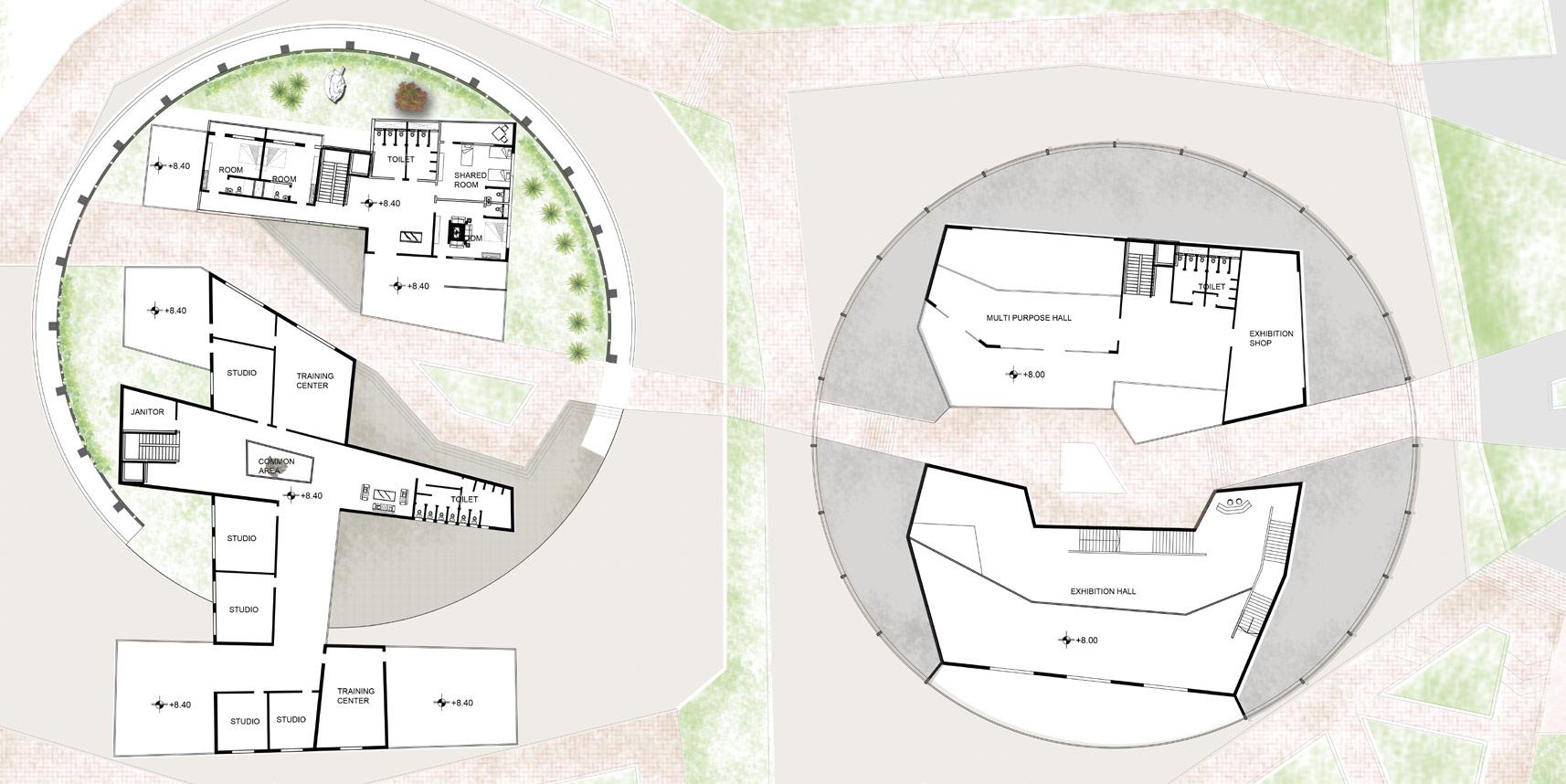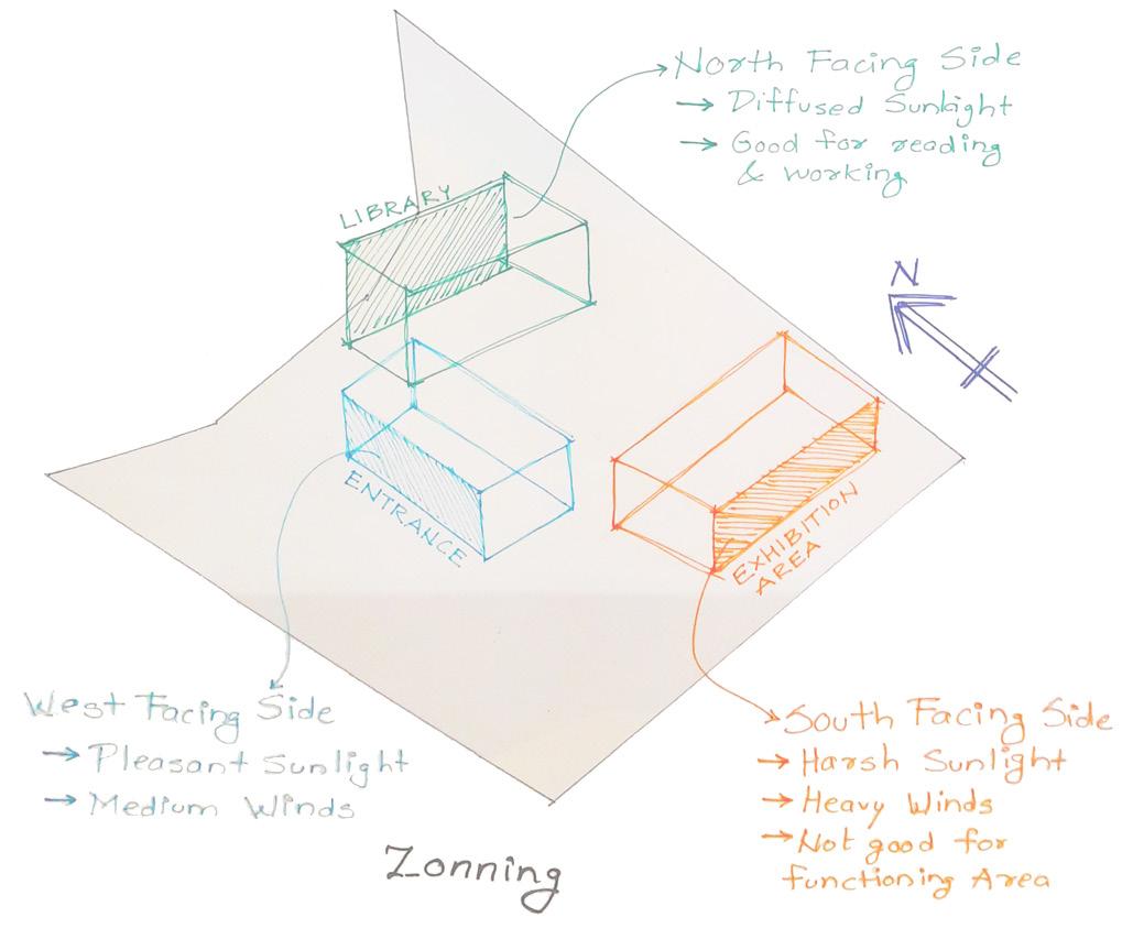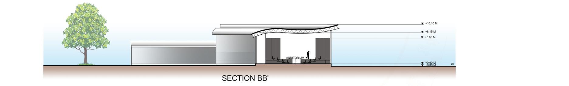 The building structure is devided in three blocks according to the users. Admin area, institutional area and exhibition area are seperated from one another for user convenience.