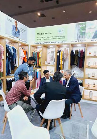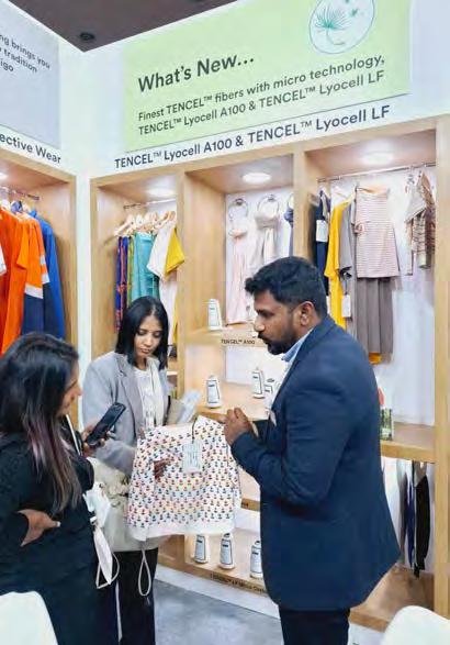 experiencingfirsthandhowthesefibersaresetting newstandardsinsustainabilityandperformance. Visitorsengagedwithacomprehensiveselection ™ of products crafted with TENCEL Lyocell ™ ™ A100, TENCEL Lyocell LF, TENCEL ™ Lyocell x Micro, TENCEL Lyocell Fill, and ™ ™LENZINGECOVERO Black. These fibers enhance fabric versatility, blend ability, insulation,andcolorfastness,makingthemideal forapplicationsacrossfashion,hometextiles,and performance wear. The response from Indian garmentmakers,mills,brands,anddesignerswas overwhelmingly positive, reflecting the growing demandforeco-consciousandhigh-performance fibersincategoriessuchasdenim,hometextiles, intimate wear, and traditional Indian apparel like sareesandkurtis.