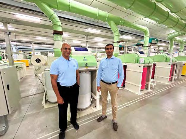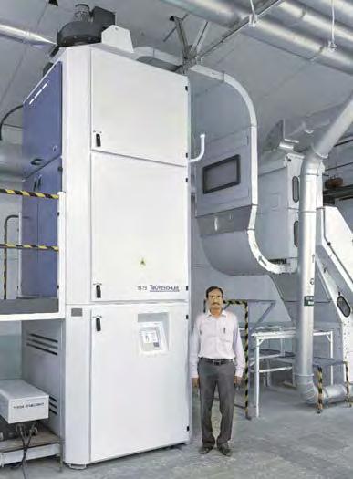 Kamal Kumar, owner of Patiala Gold LLP, is enthusiastic about the user-friendly cleaning and maintenance of the TS-T3: “This reduces downtime to an absolute minimum without any loss of performance. Based in Samana, Punjab, the company operates twelve Trützschler cards withIDF,producingupto30tonsofrotoryarnper day, mainly for bottomweight and bed sheets. “Compared to other foreign part separators, the productionefficiencyofourblowroomandcard linesissignificantlyhigherwiththeTS-T3,”says Kamal Kumar. Blue Rose Cotspin and Patiala Gold are using the TS-T3 in rotor recycling applications, even for polycotton blends. They havealsoplacedrepeatordersfortheirnewunits basedontheperformanceoftheTS-T3.