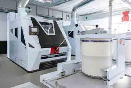 Among its pioneering highlights, the A tocard SC with A tocoil introduces the revolutionary PDS PreDraft System and rectangular cans, optimising energy efficiency while ensuring superior sliver quality. The nterS AG , with its lift-and-transport design, reimaginesmaterialhandlingthroughseamless automation, while its integration with the Sa rer Senses Mill digital anage ent syste embodies true Industry 4.0 intelligence.