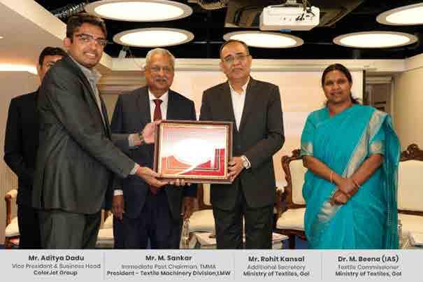 On the occasion Mr. Aditya Dadu, Vice President & BusinessHead,ColorJetGroupstated: "We are truly honored to receive the TMMASpecial Export Award year on year and the Certificate of Appreciation for EARTH NXT. These accolades reaffirm our commitment to innovation, sustainability, anddeliveringfuturereadyworld-classtextile solutions relevant. At ColorJet, we strive to push the boundariesoftechnologywhilecontributing positively to the global textile ecosystem.”